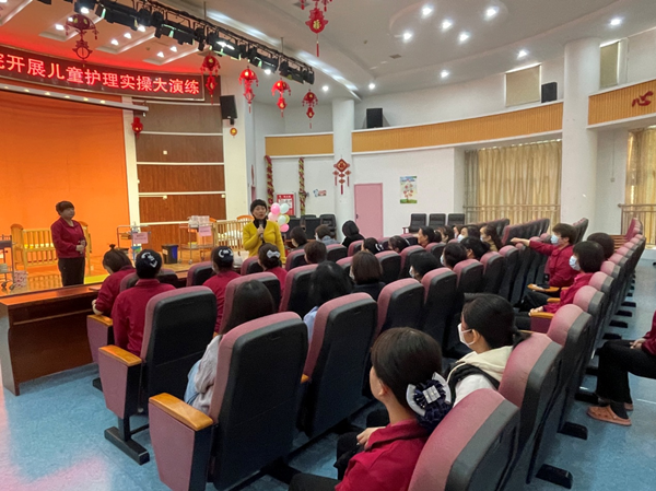 2022年全省儿童护理员技能竞赛,宝鸡市儿童福利院取得了优异的成绩,为了更好的做好传帮带的作用,一等奖获得者徐薇、二等奖获得者崔媛、科室业务骨干杨坤,分别依次进行演练展示。选手以饱满的热情、和蔼的沟通、细致的检查和娴熟的操作,沉稳有序的完成实操,她们紧密协作演绎的“真实”场景深深打动了在场的评委和领导,现场响起热烈的掌声。宝鸡市儿童福利院40多名护理员全部积极参与其中,护理员代表和爱心妈妈观看展示。